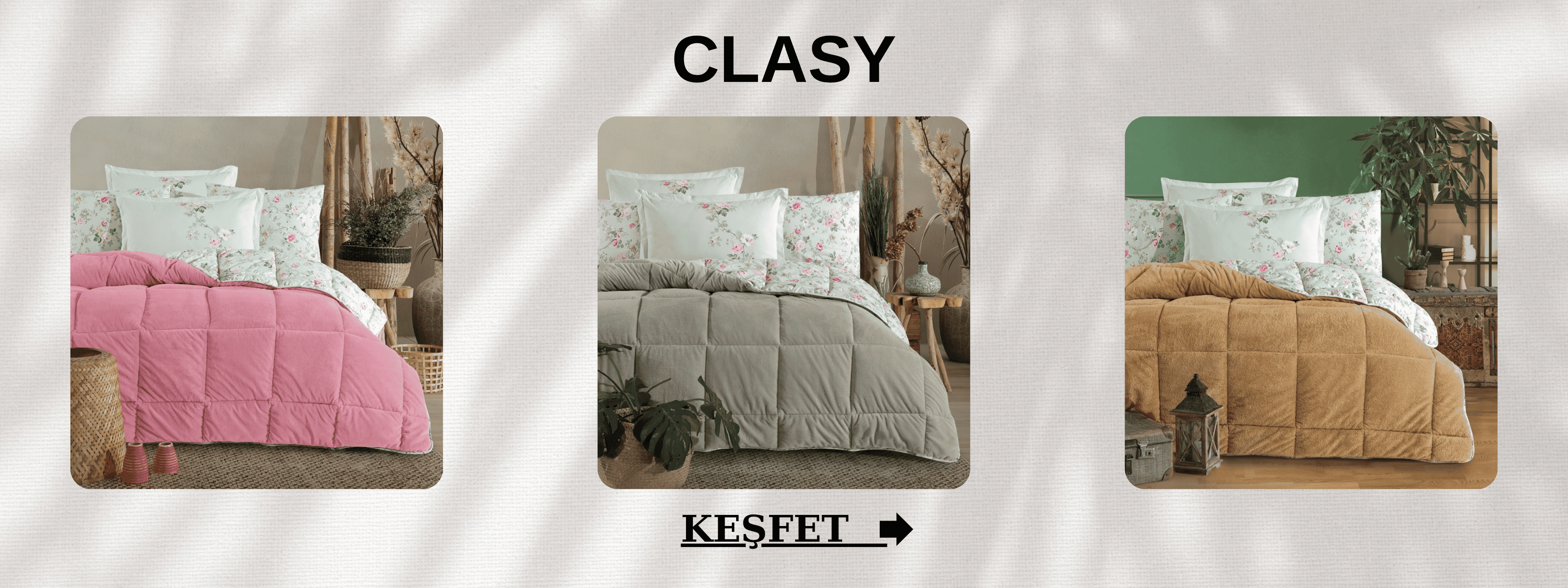 Clasy Ranforce Çift Kişilik Dört Mevsim Set Zemi V1 Pudra